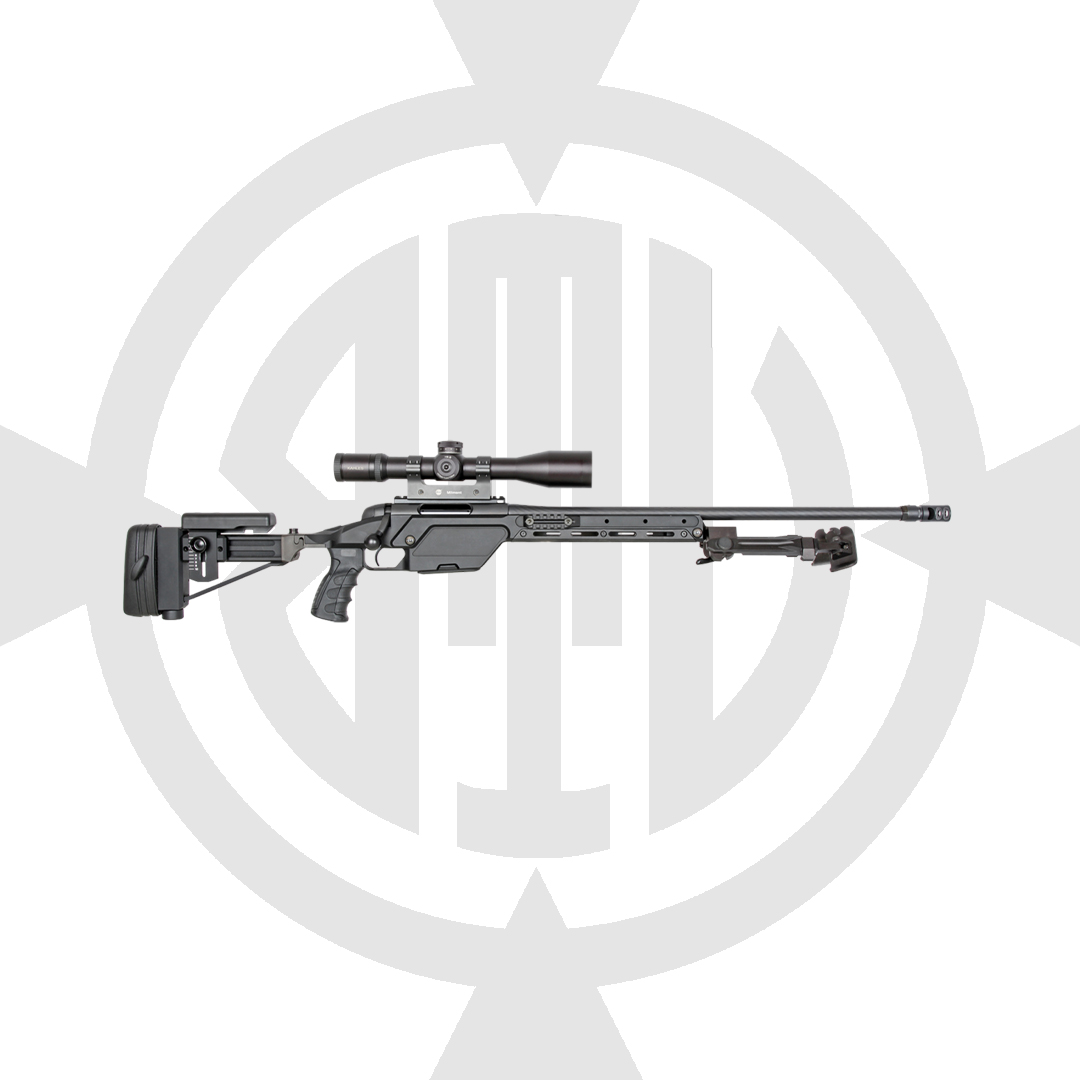 Katlanabilir bir dipçik ve ayarlanabilir bir yanak parçası ve dipçik plakası ile son derece hassas, sürgü mekanizmalı bir keskin nişancı tüfeğidir.