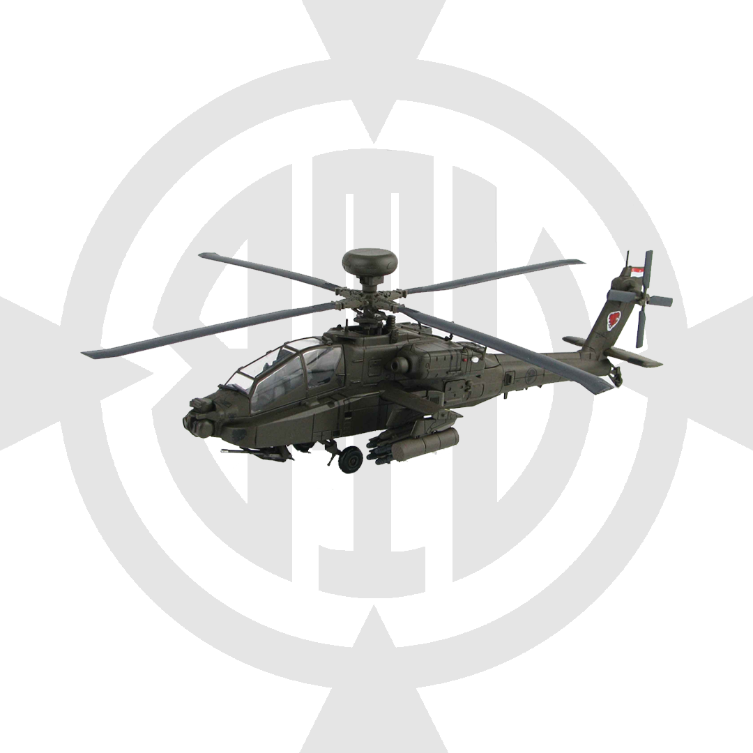 Amerikan ikizturboşaft saldırı helikopteri, kuyruk çarkı tipi iniş takımı düzenlemesine ve iki kişilik bir mürettebat için tandem kokpite sahip. Hedef alma ve gece görüş sistemleri için buruna monte sensör paketine sahiptir. Ana iniş takımları arasında, uçağın ileri gövdesinin altında taşınan 30 mm (1,18 inç) M230 zincirli top ve silah ve mağaza taşımak için saplama kanadı direklerine monte edilmiş dört sert nokta ile donatılmıştır, tipik olarak AGM-114 Hellfire füzeleri ve Hydra 70 roket kapsüllerinin bir karışımıdır. AH-64, savaşta hayatta kalma kabiliyetini artırmak için önemli sistem artıklığına sahiptir.