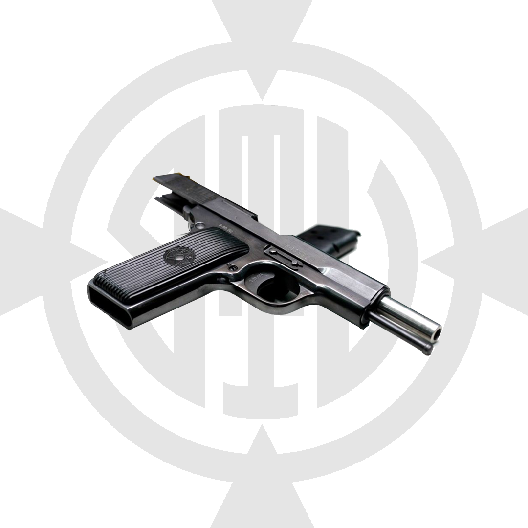 Tokarev TT-33. Sovyetler Birliği'nin ürettiği ilk yarı-otomatik tabancalardandır. TT-33 olarak da bilinir. TT'nin açılımı "Tula, Tokarev"'dir. 1920'lerin sonunda Kızıl Ordu, fazlaca eskiyen Nagant M1895 revolverleri yerine yerli üretim bir yarı-otomatik tabanca arayışına girmiştir. Ordu, pek çok farklı silah prototipinin testi sonucunda, 1930 yılında Rus silah tasarımcısı Fedor Tokarev'in "TT-30" dizaynını uygulamaya koyma kararı almıştır. Sonrasında bu dizayn az biraz rötüşlanmış ve 1934'te "TT-33" adıyla seri üretime geçilmiştir. Daha önce Almanya'dan alınıp kullanılan Mauser C96'nın 7.63x25mm Mauser'lik mermisi temel alınıp, kovan boyutlarına neredeyse hiç dokunulmadan sadece barut rötüşlaması sonucunda 7.62x25mm TT cephanesi ortaya çıkarılmıştır ve bu da yeni silahın cephane türü olmuştur. Bu 2 mermi türü o kadar benzerdir ki bazı silahlarda değişmeli olarak bile kullanılabilir pek yaygın olmasa da.