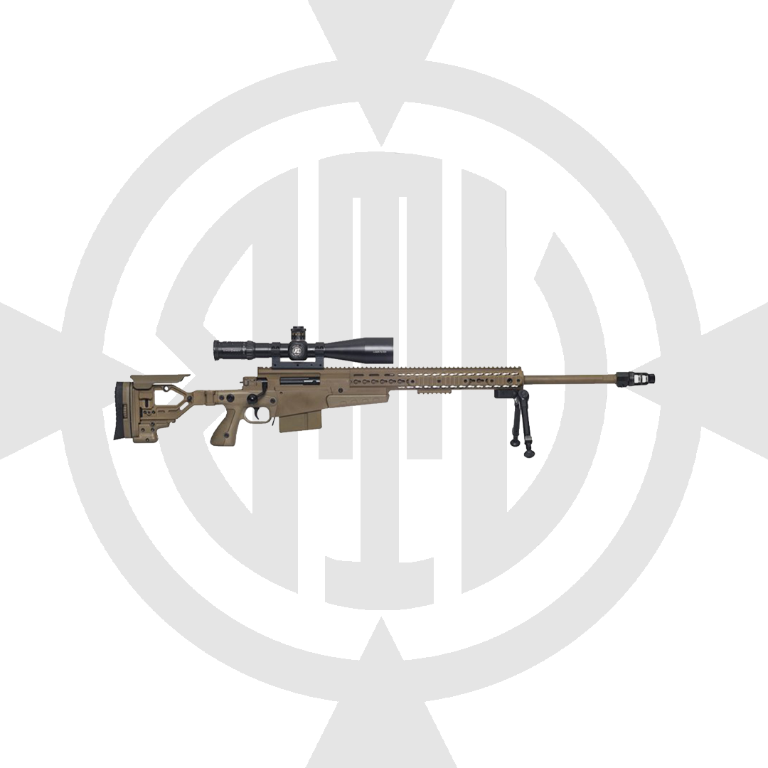 Katlanabilir bir dipçik ve ayarlanabilir bir yanak parçası ve dipçik plakası ile son derece hassas, sürgü mekanizmalı bir keskin nişancı tüfeğidir.