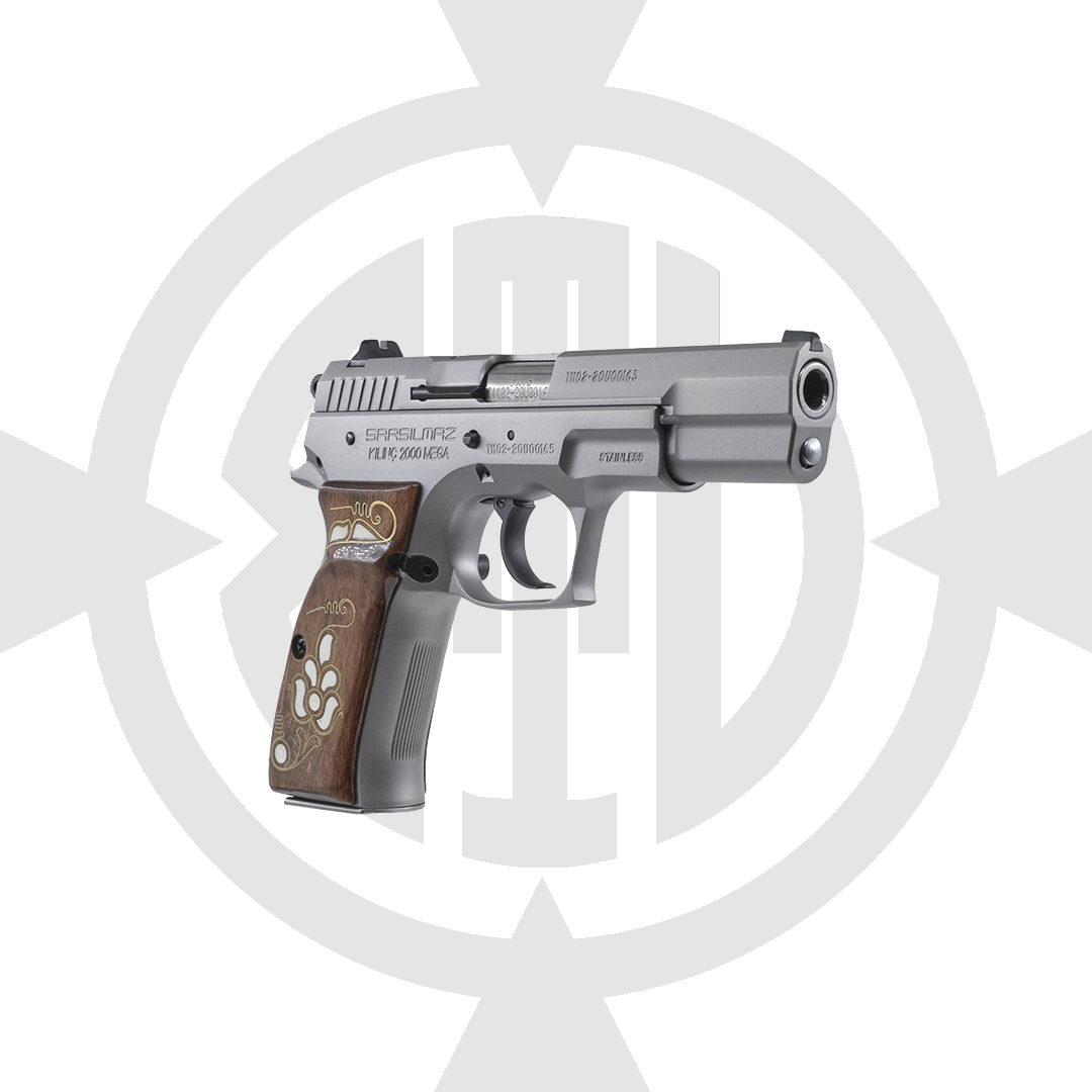 Kılınç 2000 mega, dövme çelikten oluşan gövde, namlu ve kapağa sahiptir. Paslanmaz Çelik ve parlak titan kaplamalı yüksek güvenilirlikli bir tabancadır. Mermi kapasitesi standart 15'li şarjörler halinde gelirken piyasada 17'li fişek kapasiteli şarjörlerde bulmak mümkürdür. Sarsılmaz Mega yarı otomatik bir tabancadır. Özellikle askeri ve polis kuvvetlerinin kullanımları için tasarlanmıştır. Sağ ve sol el kullanımına uygun emniyet mandalı vardır. Tabancada Pim Block Emniyeti , Mandal Emniyeti ve Horoz Emniyeti gibi emniyet sistemleri mevcuttur.